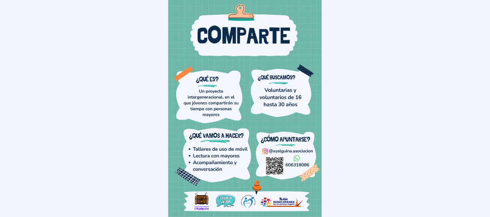 El Proyecto “COMPARTE” nace con el objetivo de fomentar las relaciones intergeneracionales entre jóvenes y personas mayores