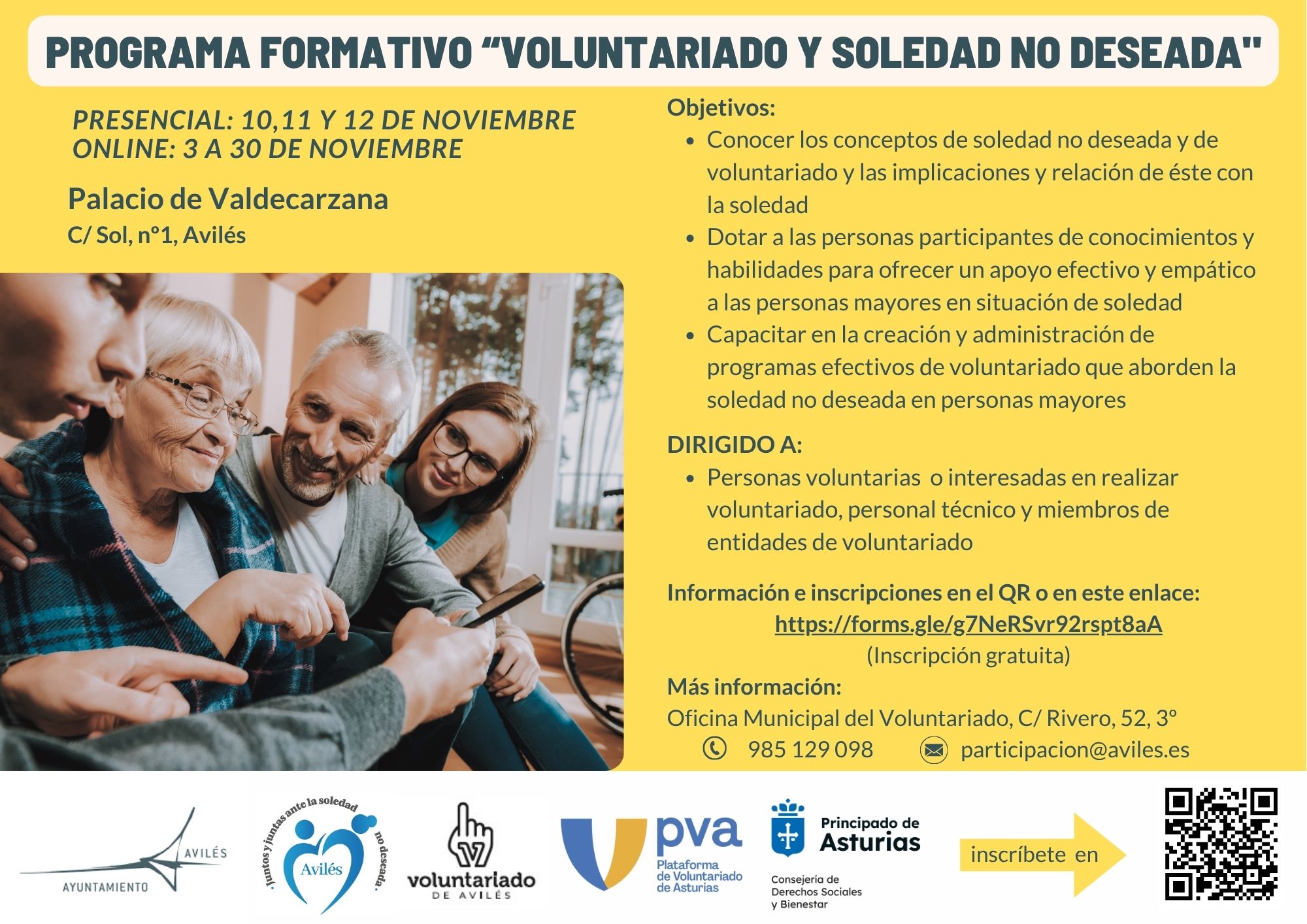 El Ayuntamiento de Avilés, a través de la Oficina Municipal del Voluntariado y en colaboración con la Plataforma del Voluntariado de Asturias, pone en marcha la Segunda edición del Programa Formativo “Voluntariado y soledad no deseada”