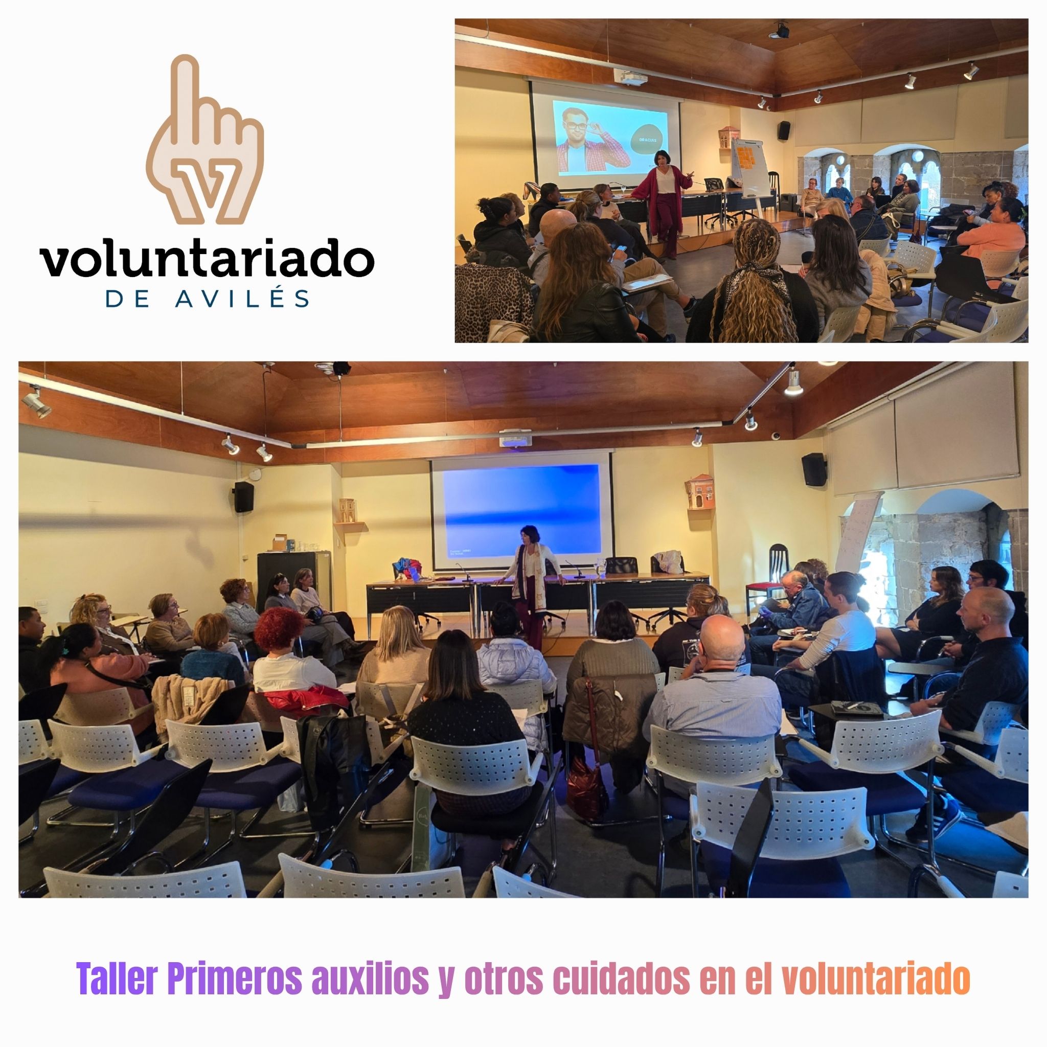 Con esta jornada se da por concluido el Taller “Primeros auxilios y otros cuidados en la acción voluntaria” organizado por el Ayuntamiento de Avilés a través de la Oficina Municipal del Voluntariado, en colaboración con la Plataforma del Voluntariado de Asturias.